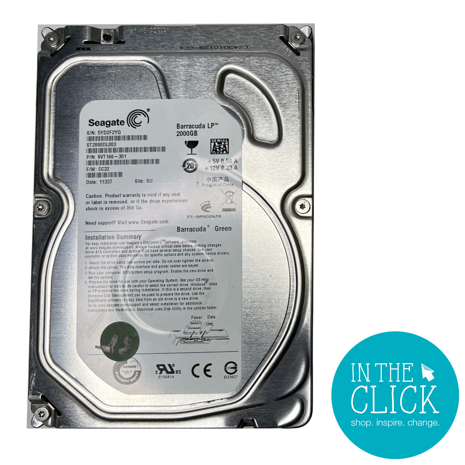 WD Green 3.5in HDD 2TB 5400RPM SATA III WD20EZRX SHOP.INSPIRE.CHANGE